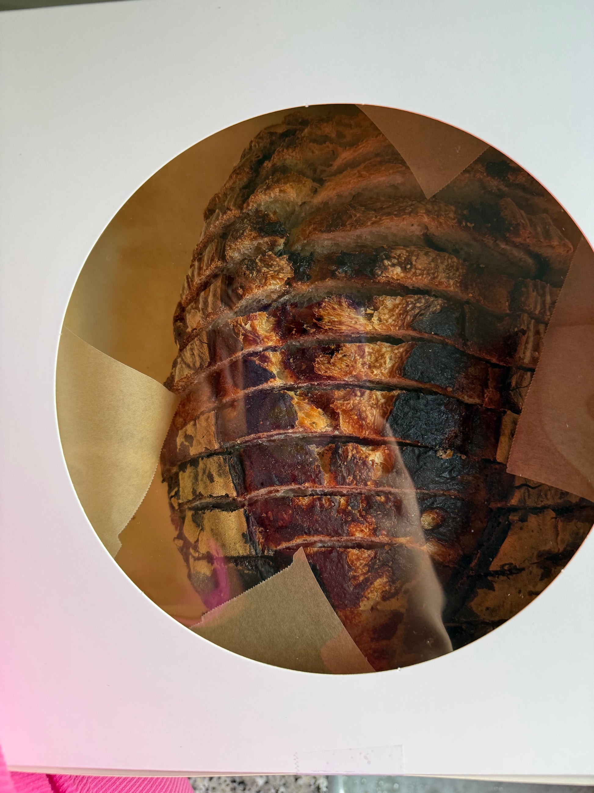 This handcrafted sourdough loaf is swirled with sweet cinnamon and rich brown sugar, creating a beautiful marbled interior and a heavenly aroma. Naturally leavened for a light, chewy crumb and slightly crisp crust, it carries the gentle tang of sourdough balanced by comforting, cozy sweetness in every bite. Perfect toasted with butter or enjoyed as-is—like a hug in bread form.